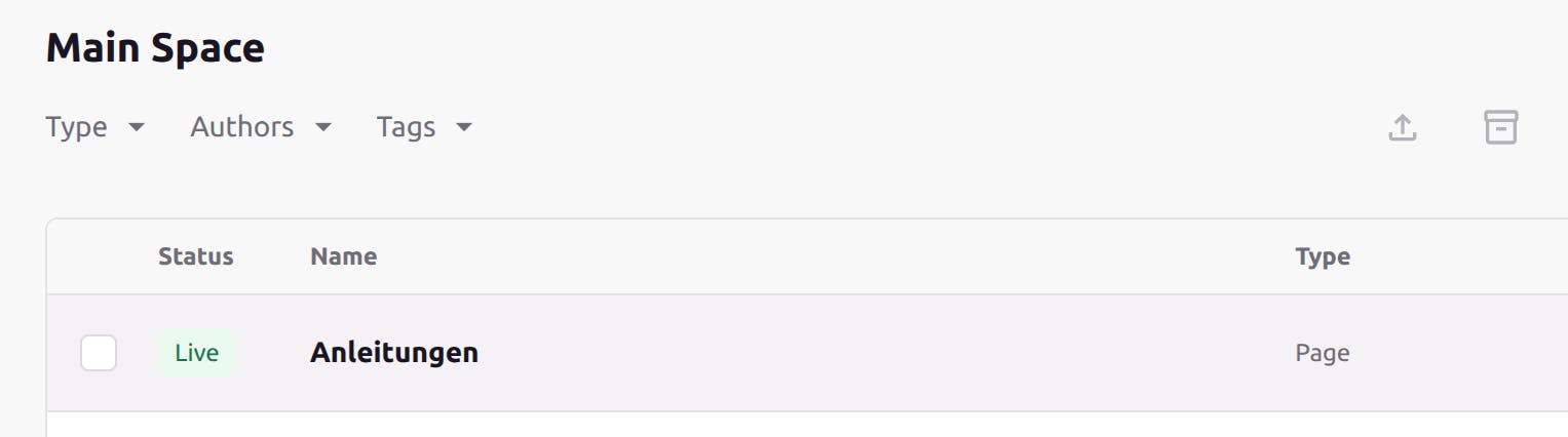 Archived: Liste der archivierten Inhalts-Elemente. Generell empfehle ich nie etwas zu löschen, sondern immer zu archivieren. Diese Funktion kann auch dazu verwendet werden Inhalte, die temporär nicht publiziert sein sollen, aber veilleicht später, vor der Öffentlichkeit zu "verstecken". - In der Liste nach einem Inhalts-Typ suchen.